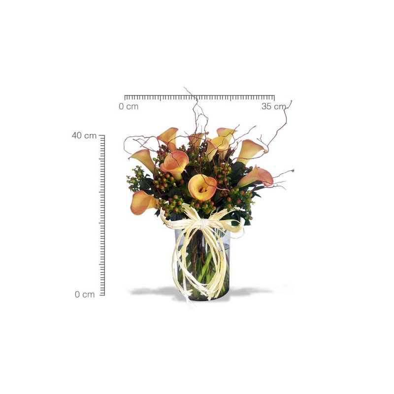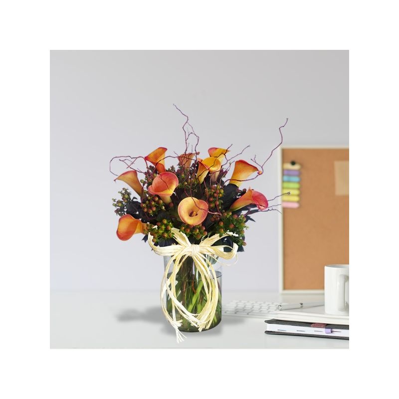 Elegante diseño con 10 calas en florero de vidrio.